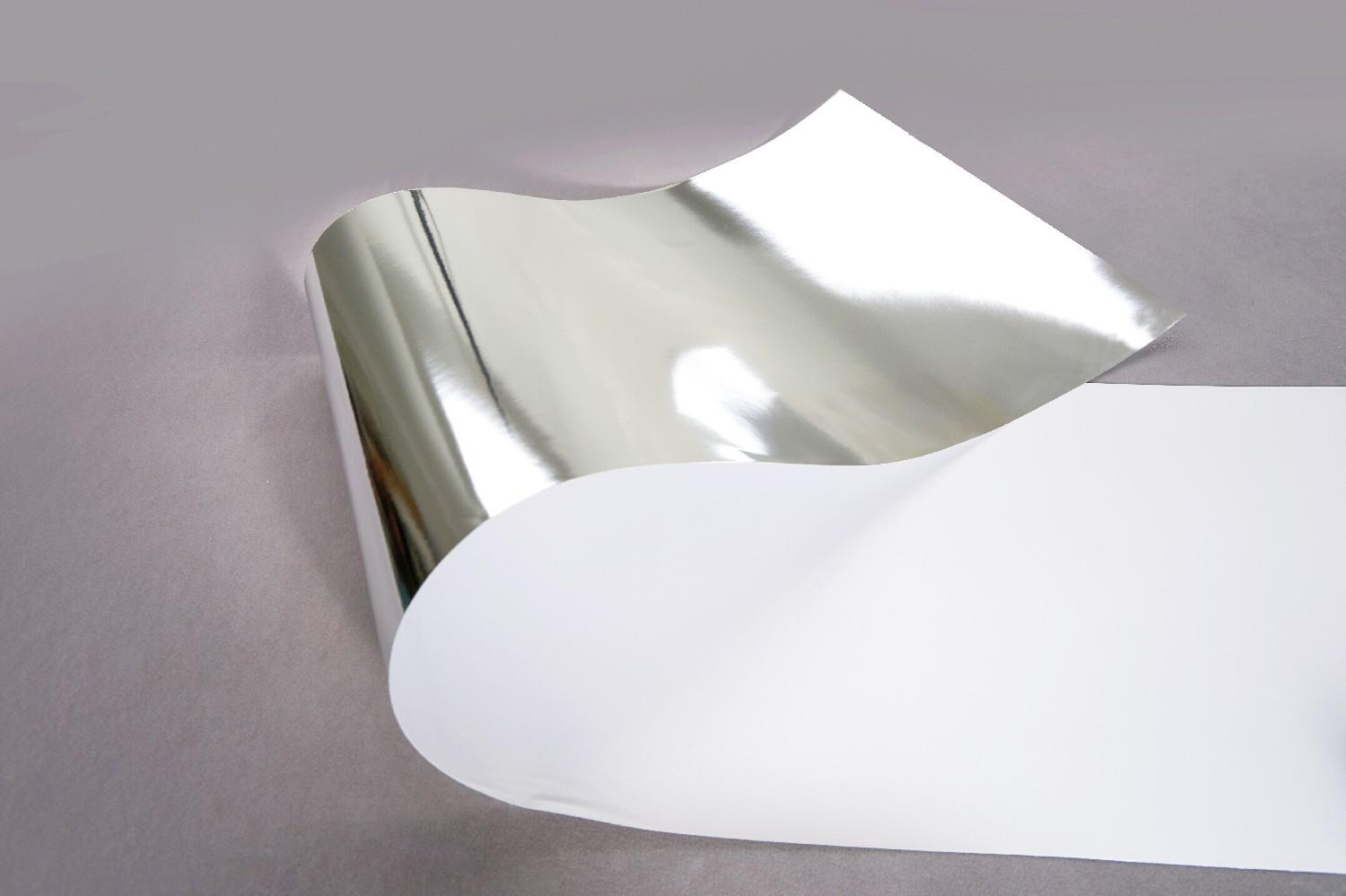 Aluminum layer is pre-made on base film, on a thermal lamination machine the aluminum layer is hot-transfering onto the white paper, for next step UV printing onto it,